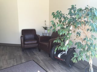 Since we have so much more space, we upped our plant game with a massive hand painted orange planter in our entry way, under a metal version of our company name! As you can also see, our entryway is also the home of one of our engineer's Segway. You've probably seen him around Portland riding it!